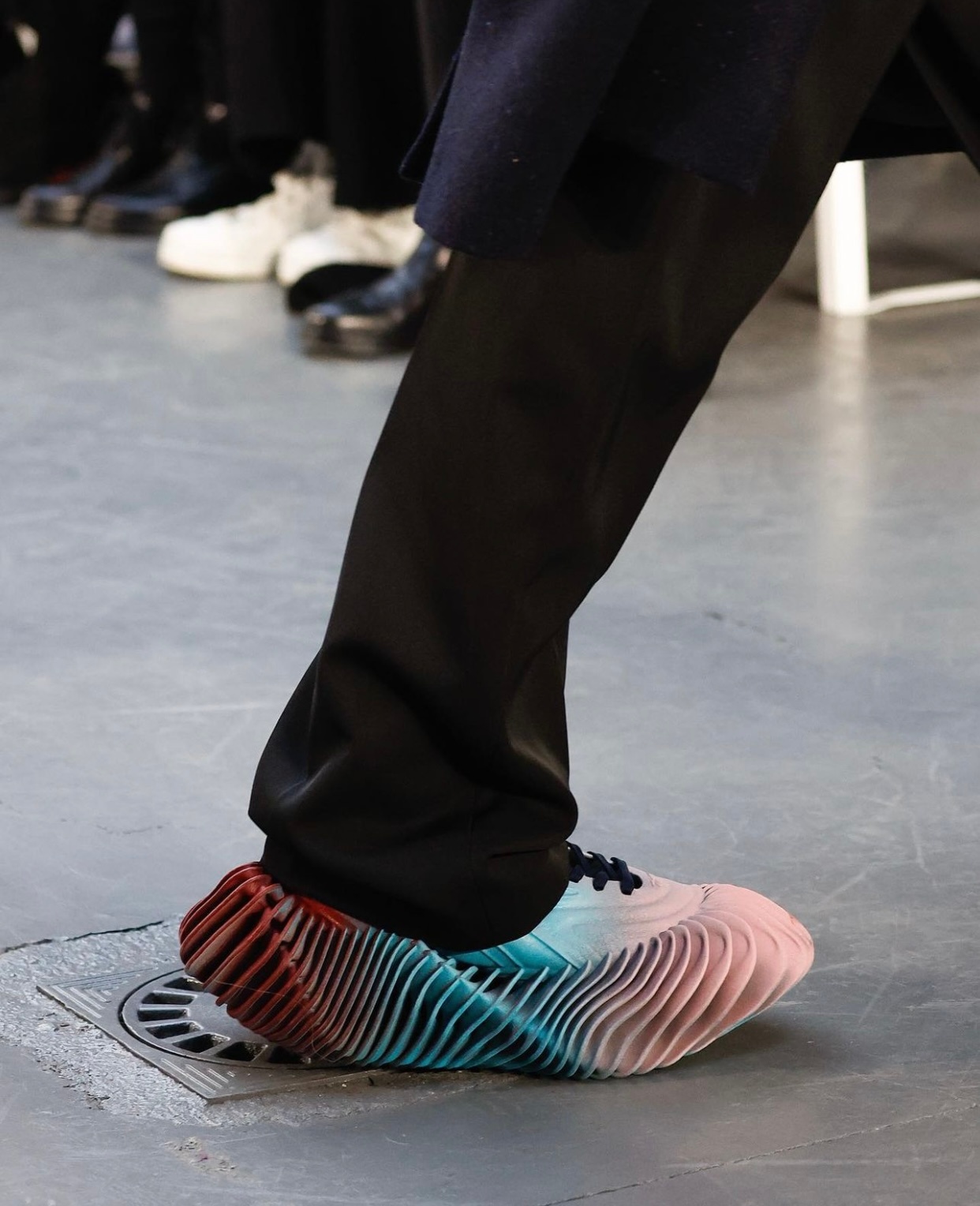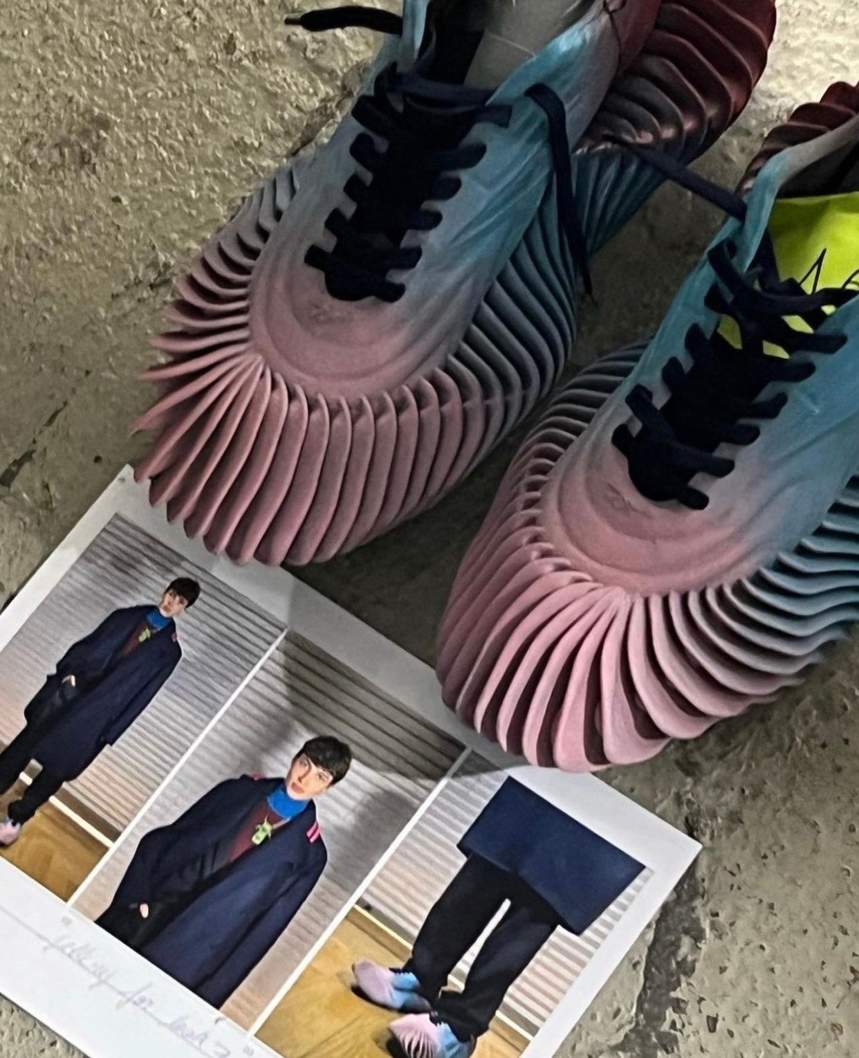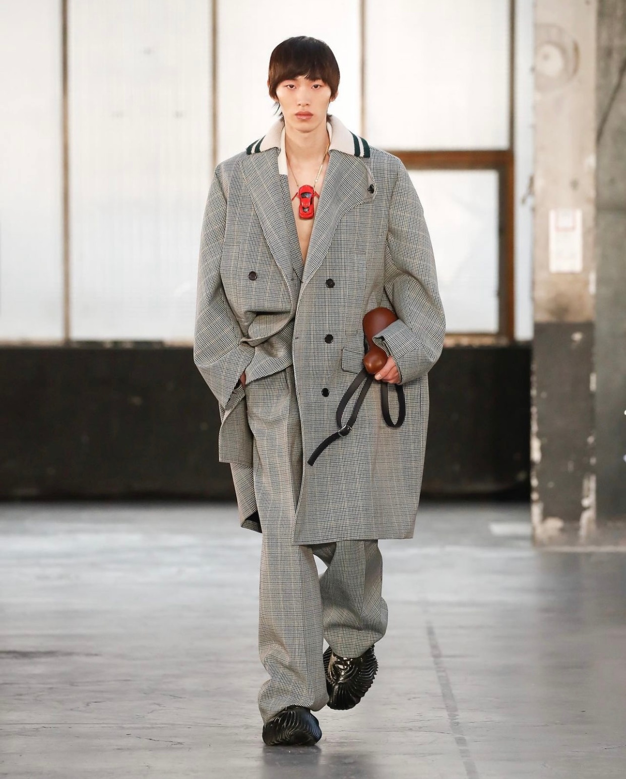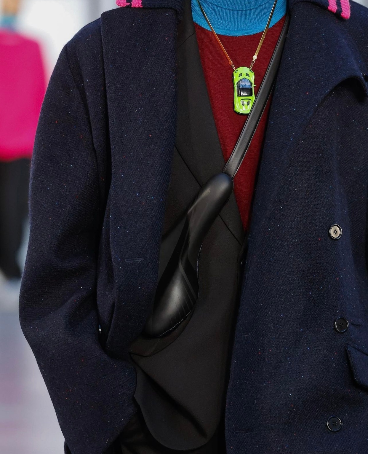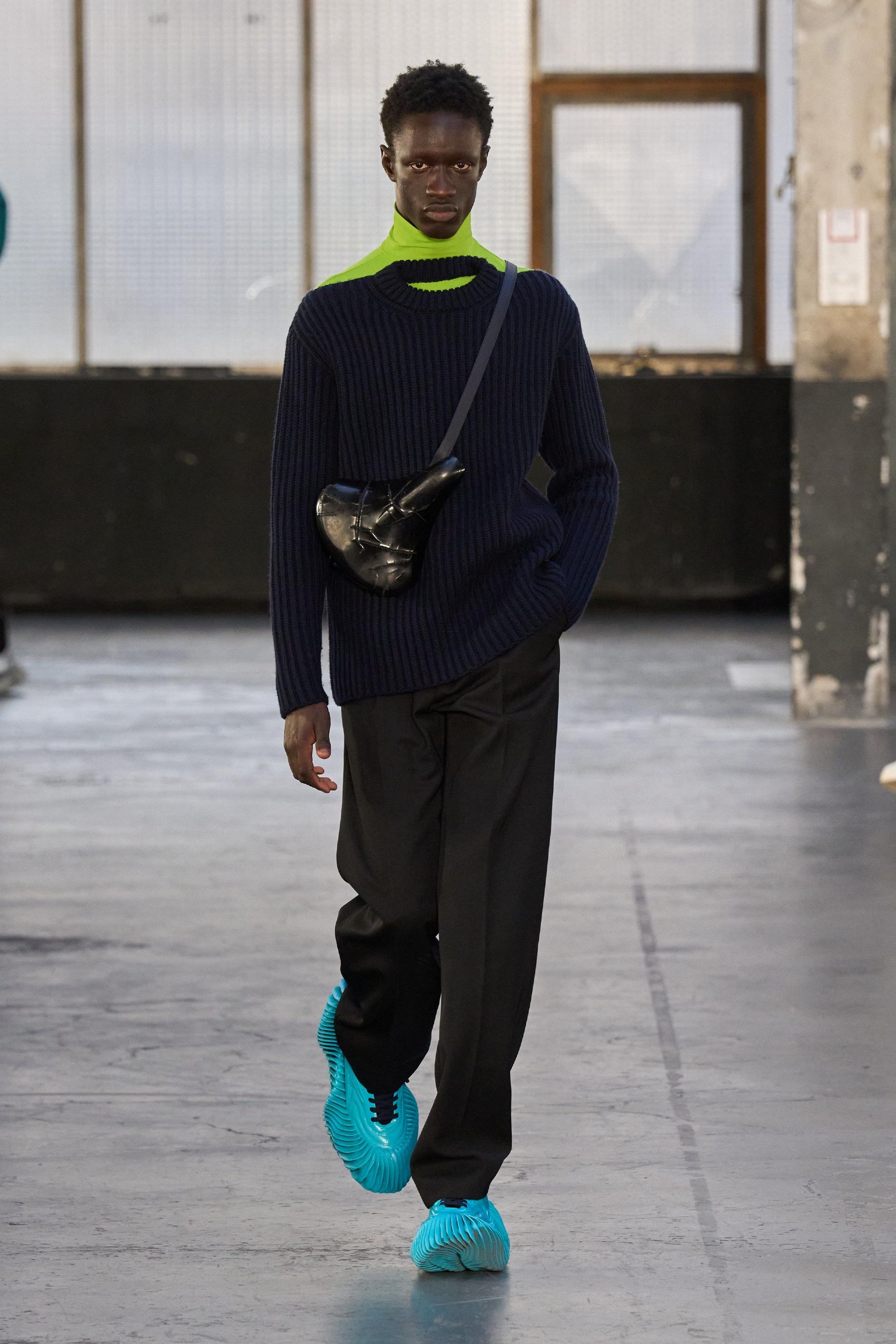Botter最近几季的配件都特别出彩,之前的水袋手套、冰桶手袋、气罐手袋都创意十足,这次又有了和锐步合作的3D打印鞋子,自行车凳子形状的包包,小汽车造型项链等!#巴黎男装周##一起云看秀#