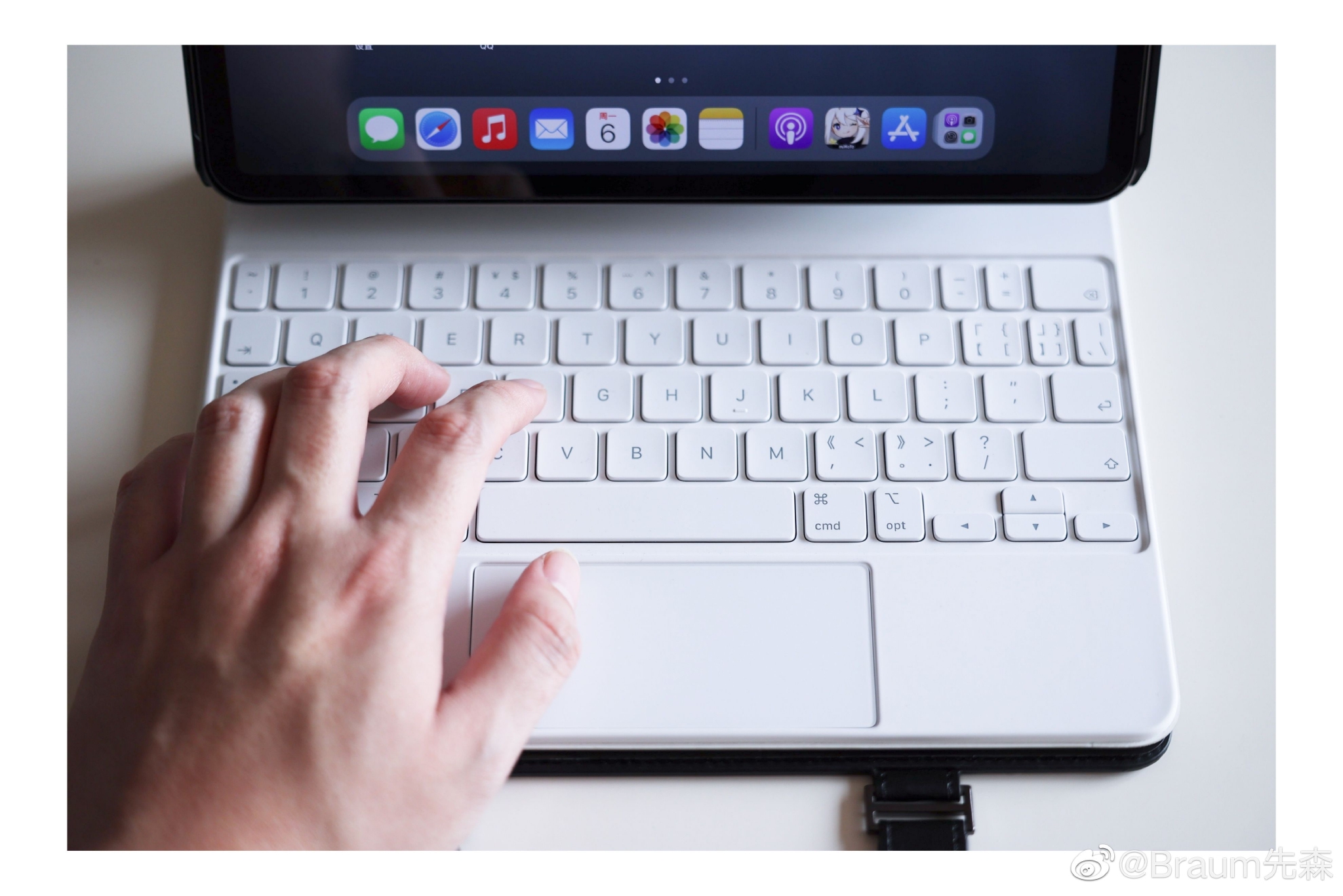 平常这个壳不用取下来,很轻薄可以直接放在妙控键盘里面用,充电可以通过妙控键盘侧面的C口。它本身是个三边设计,也不影响给Pencil充电。