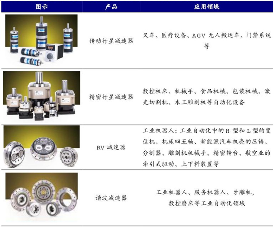 而精密减速器又包括谐波减速器、RV减速器、精密行星减速器等。其中,前两种应用广泛,而精密行星减速器则受产品同质化影响,竞争激烈。