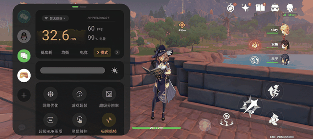我们将《原神》开启最高画质,游戏帧数设定在60 FPS。因为背夹使用了双霍尔开关设计,所以当一加Ace 2装上后散热泵就开始自动工作了,并不需要我再手动调整。