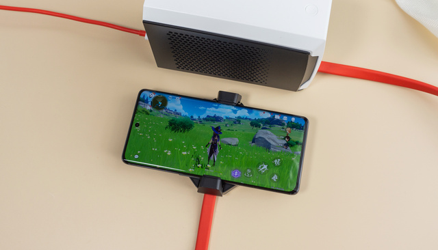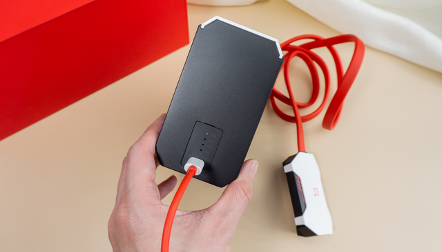 一加45W液冷散热器是由手机散热背夹和散热泵组成,两者之间通过线缆来连接。所以在体积上会有些大,外出携带可能有点不便。