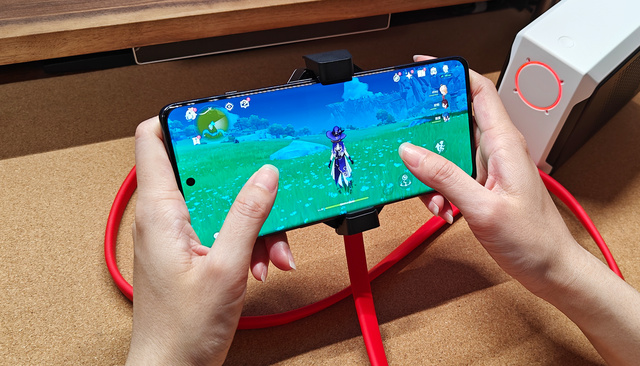 实际的游戏体验稍许有些特别。首先由于背夹宽度较窄,所以并不会对持握造成影响,双手操控空间依旧很大。装上散热背夹后的整体重量只是多了一点,相当于一个手机壳负重。