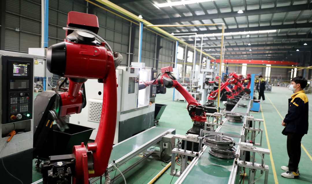 4月22日,安徽省濉溪县濉芜产业园,一家汽车部件有限公司员工正在抓紧生产汽摩轮毂部件。