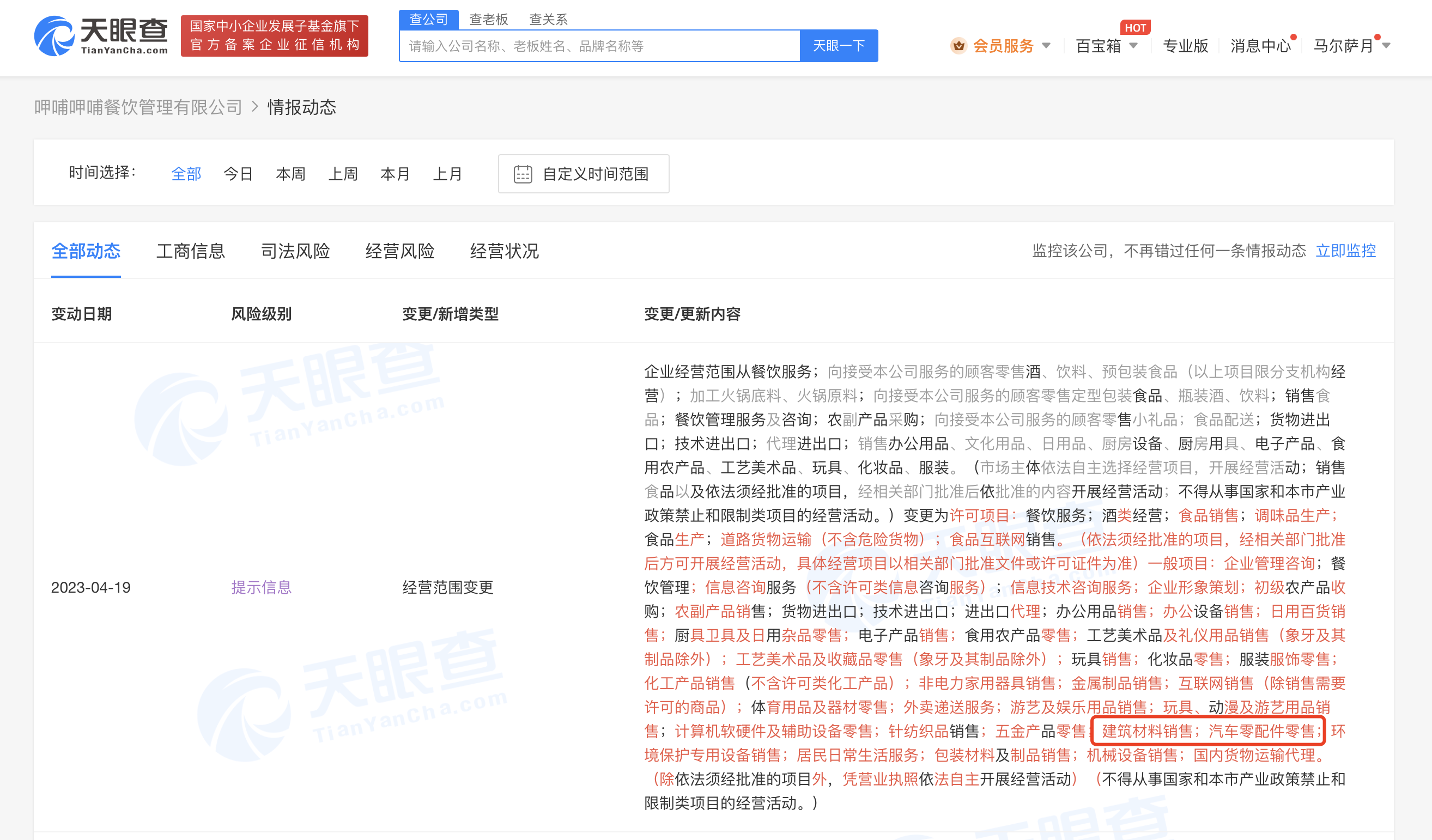 天眼查App显示,近日,呷哺呷哺餐饮管理有限公司发生工商变更,经营范围新增建筑材料销售、汽车零配件零售、国内货物运输代理等。