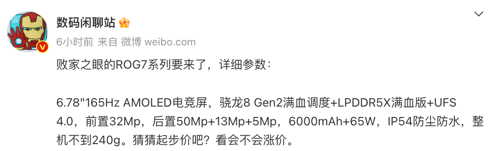 腾讯ROG游戏手机7系列再曝,外观设计基本没变,还有全新配件