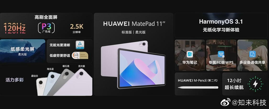 华为MatePad 11 2023版,主打高清高刷护眼,同样搭载鸿蒙3.1,2299起。