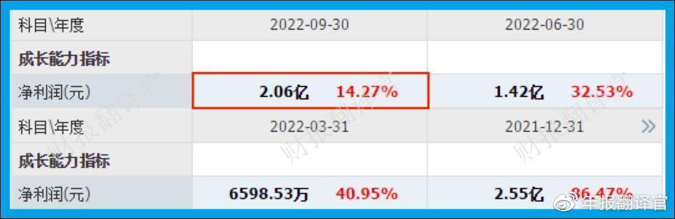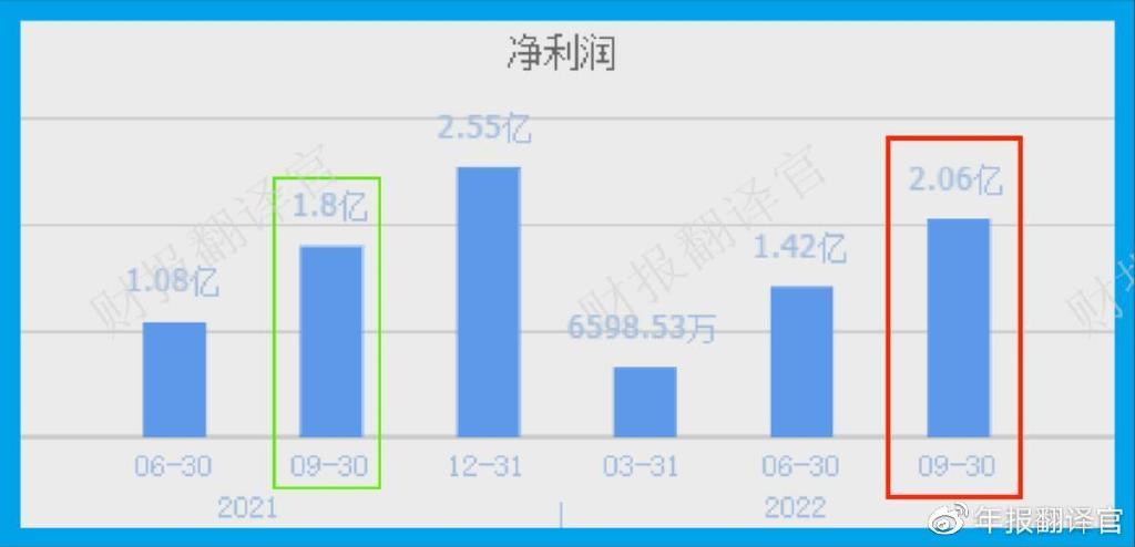 2021年第三季度,该企业的净利润只有1.8亿元。到了2022年第三季度,这家公司的净利润就达到了2.06亿元,同比增长了14%。