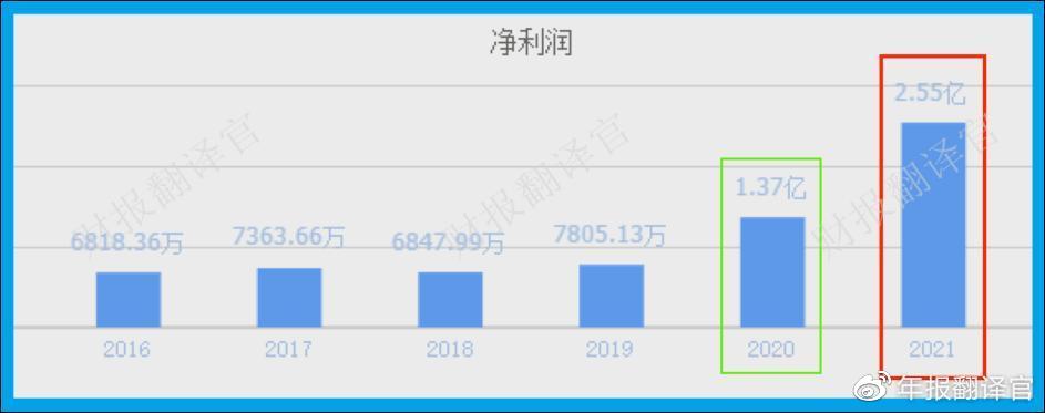 2021年这家企业全年的净利润为2.55亿元,比2020年大幅增长了87%,并且创出了历史新高。
