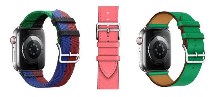 连同Apple Watch Hermès 表带也有春季新色,分别为Blanc 白色、Rose Azalée 杜鹃玫瑰色、Bambou 竹绿色,另外还推出H/Bleu Saphir 红色配蓝宝石色Casaque Single Tour 表带与Azalée/Noir 杜鹃玫瑰色配黑色Casaque Single Tour 表带。