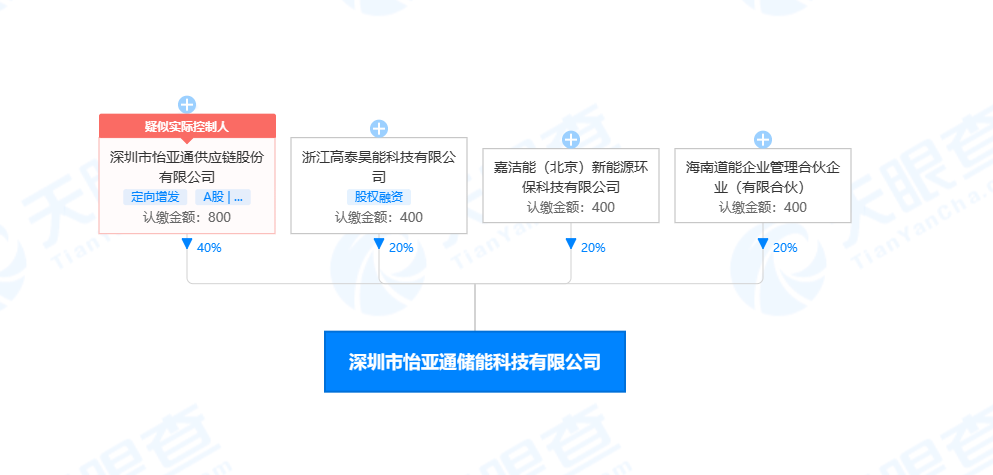 天眼查显示,近日,深圳市怡亚通储能科技有限公司成立,注册资本2000万元,经营范围包含:储能技术服务;新材料技术研发;电池零配件销售;能量回收系统研发等。该公司由怡亚通等共同持股。