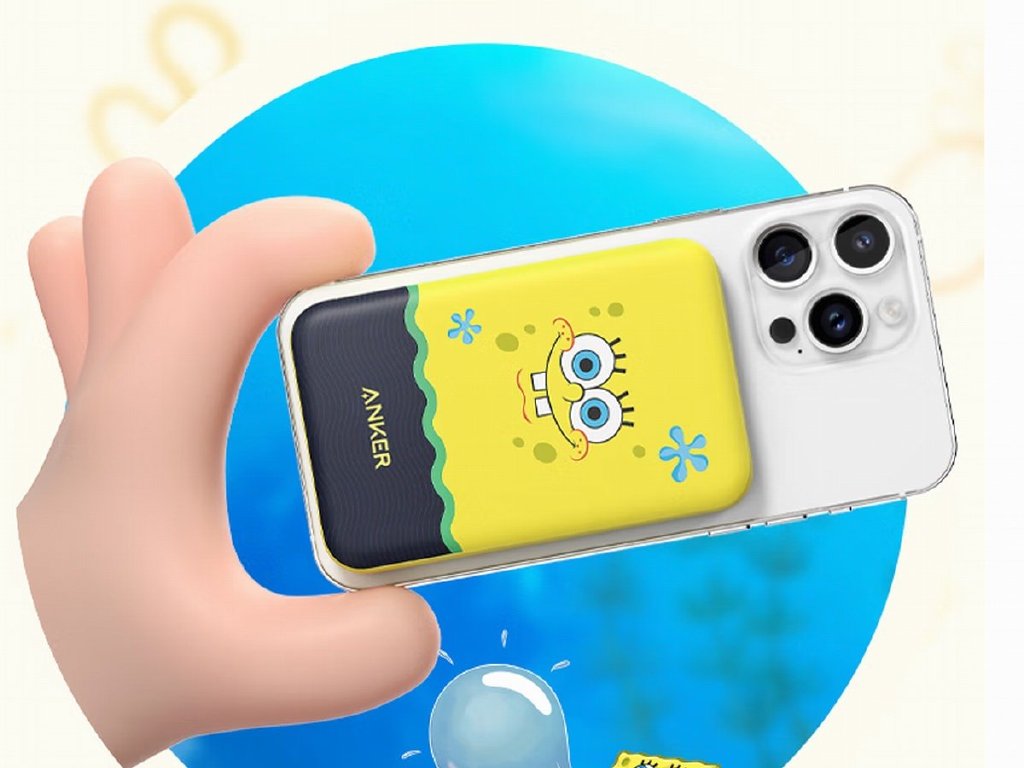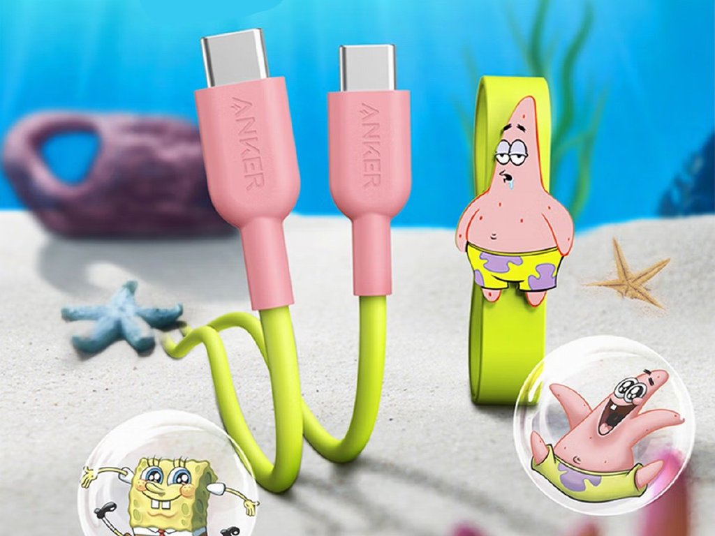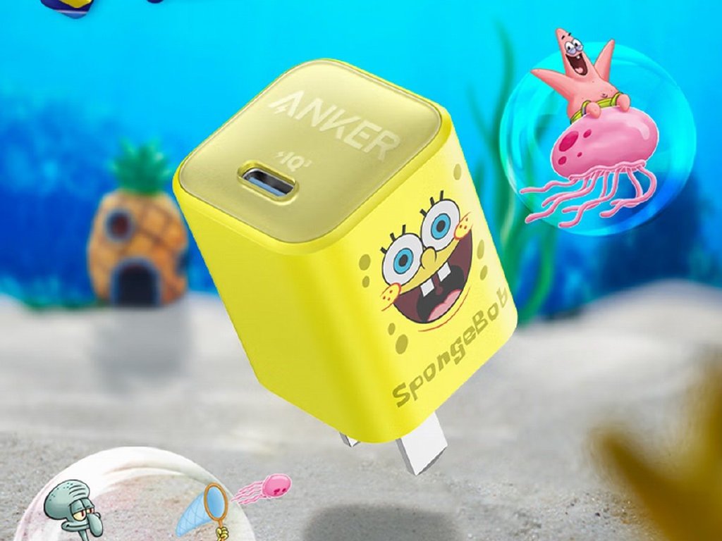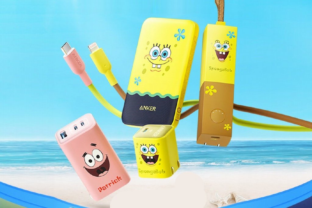2023 年初,Anker 与海绵宝宝官方联名,推出了一系列正版授权快充周边,包括海绵宝宝充电器、派大星氮化镓充电器、海绵宝宝磁吸充电器、海绵宝宝能量棒等,全部采用同色系涂装,并印上对应的笑脸。