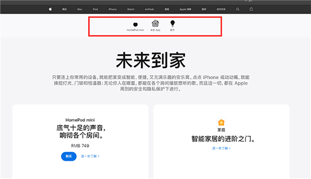 日前苹果中国区官网已上线单独的家居板块,主要分为HomePod mini、Home App(家庭App)以及智能家居单品三个品类,目前官网所售家居配件包括桥接器、摄像头、照明与灯泡、门锁、网状Wi-Fi路由器、插座、感应器和开关,这大概率也预示着苹果正式在中国市场加入智能家居领域。