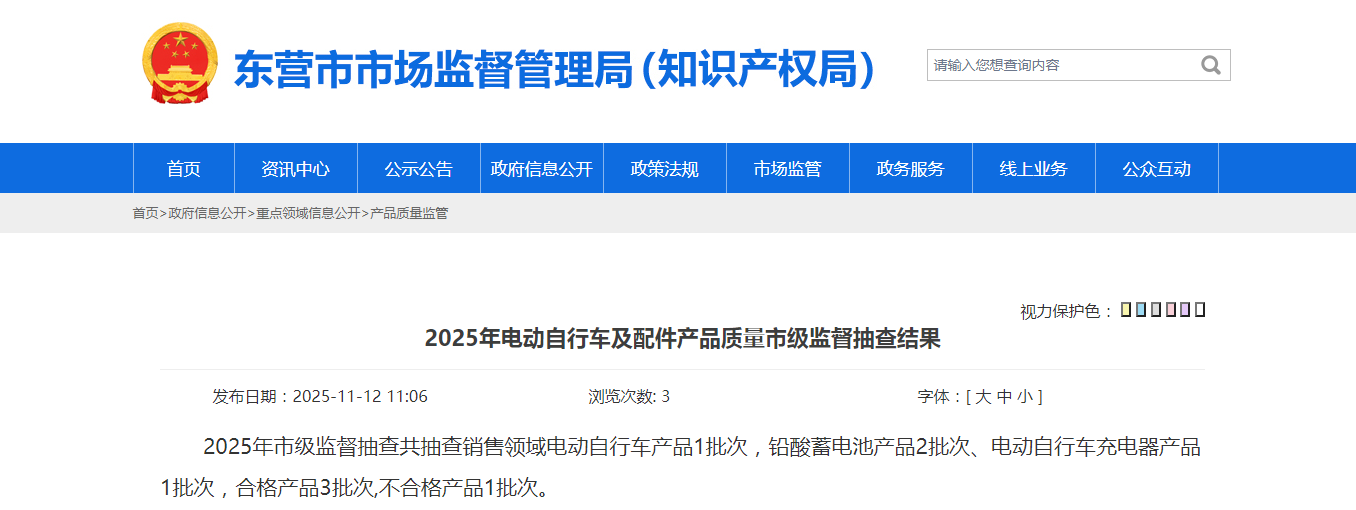 中国质量新闻网讯 11月12日,山东省东营市市场监管局网站发布2025年电动自行车及配件产品质量市级监督抽查结果。