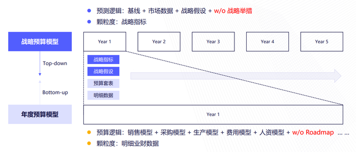 挑战:战略预测到年度预算继承的重难点是「颗粒度如何对齐」。公司高层制定的战略降本目标在向研发、采购、生产等部门分解时,常因缺乏统一的承载平台与精细数据模型而流于形式,导致战略举措(Roadmap)与具体预算资源脱节。