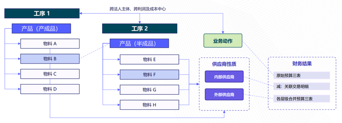 -内部交易全景还原:基于统一BOM与工序数据,系统自动模拟并核算各法人、利润中心间的内部交易与增值,为公平的转移定价与业绩评价提供依据。