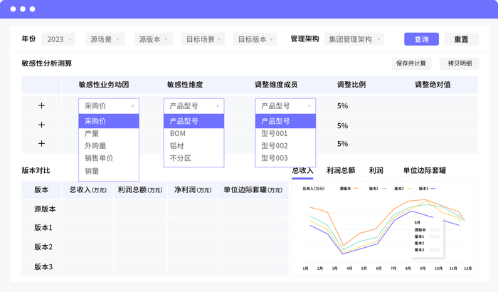 -下沉颗粒:依托BOM级预算,建立成本与物料、工序的精准关联,瞬时模拟价格波动与设计变更对利润的全局影响,精准定位差异。